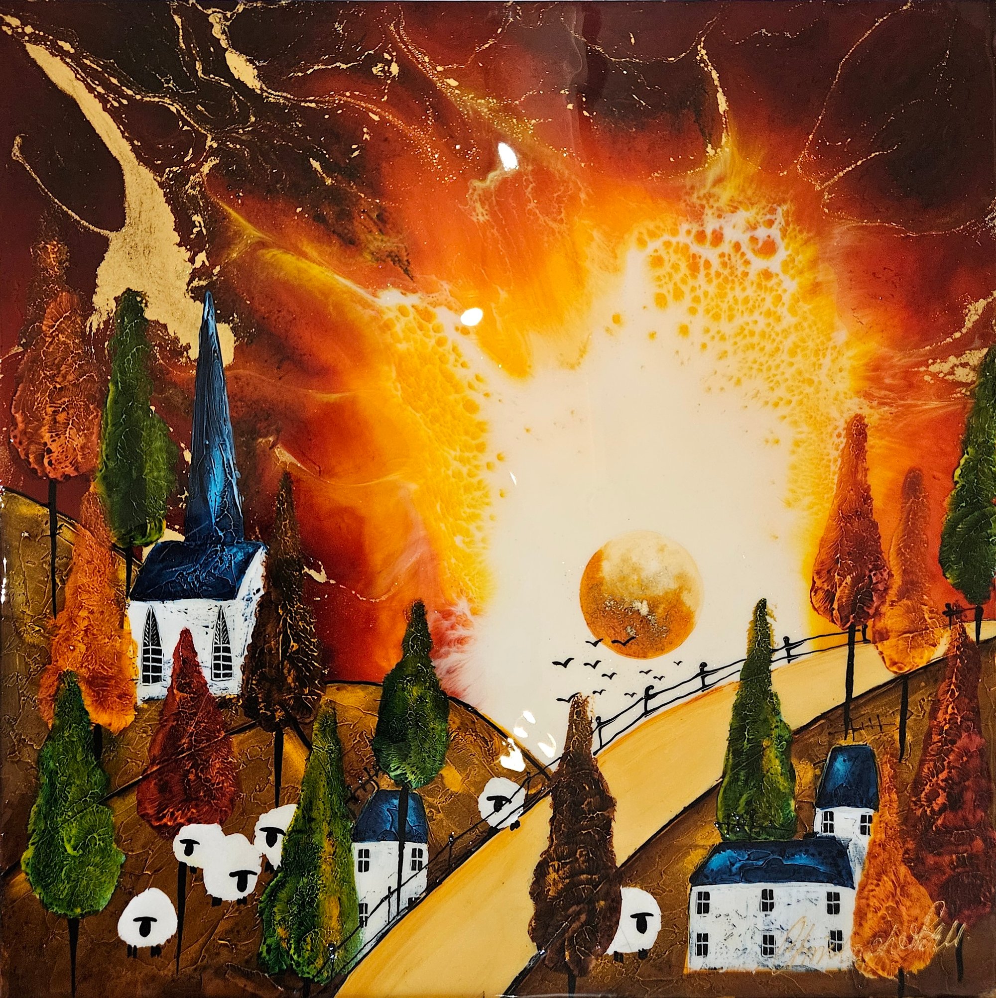Original Mixed Media Painting on Glass